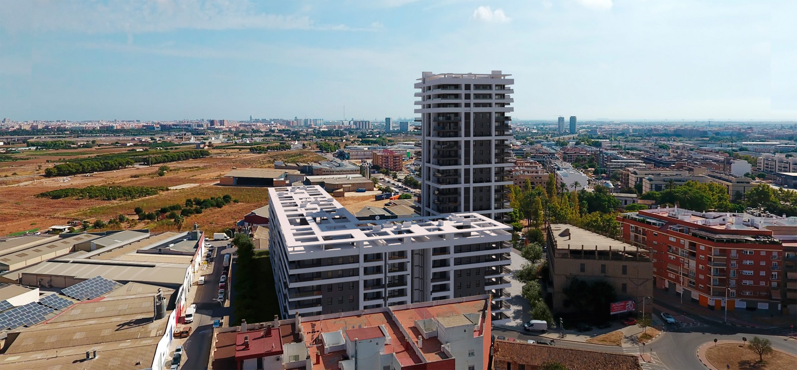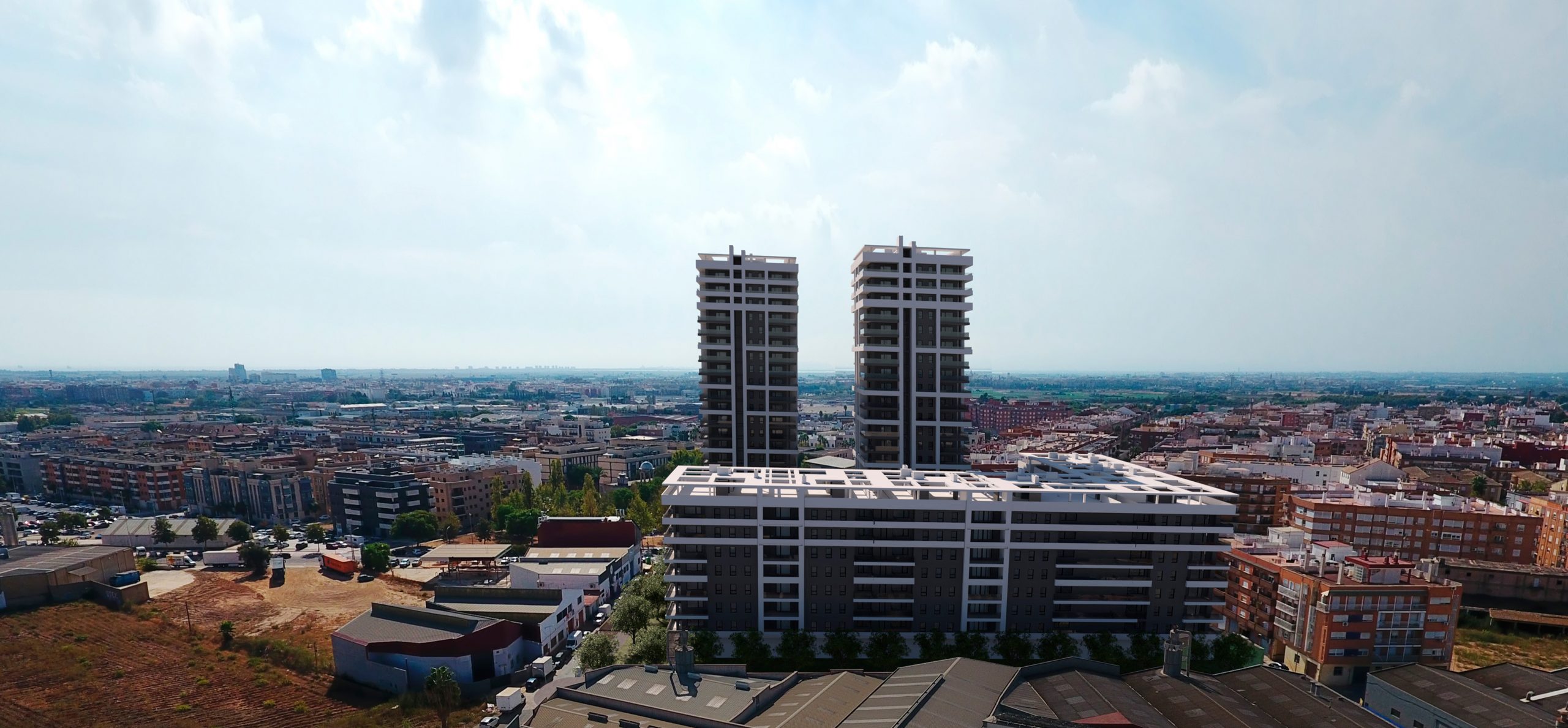 Se trata de una zona de borde de la población en la que se produce una transición, un tanto difusa, del suelo Residencial y el Industrial. Este hecho, unido a la elevada edificabilidad del suelo, nos ha hecho plantearnos la edificación en altura que muestra la prouesta.